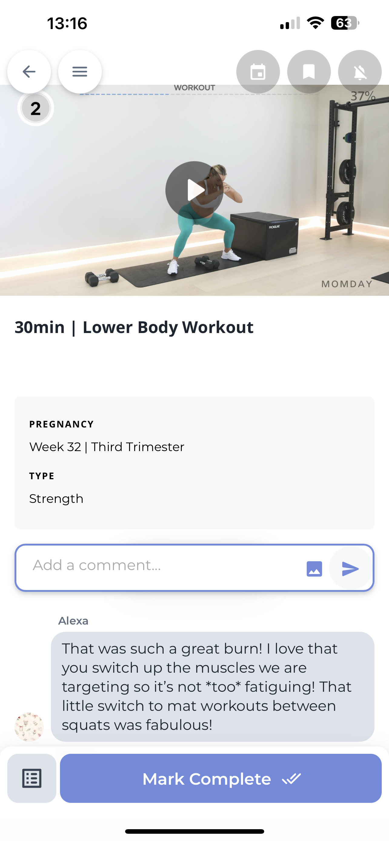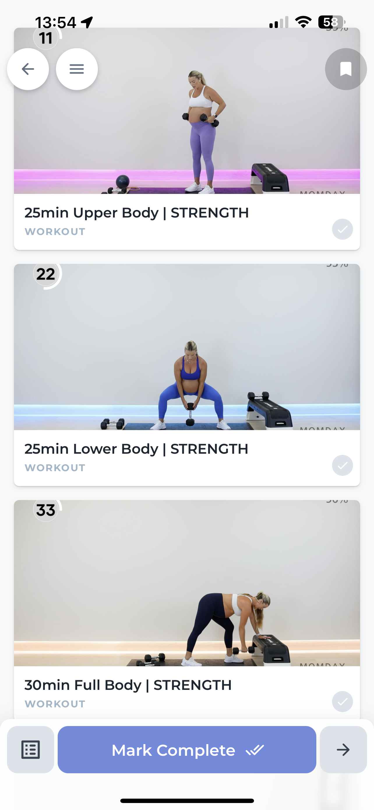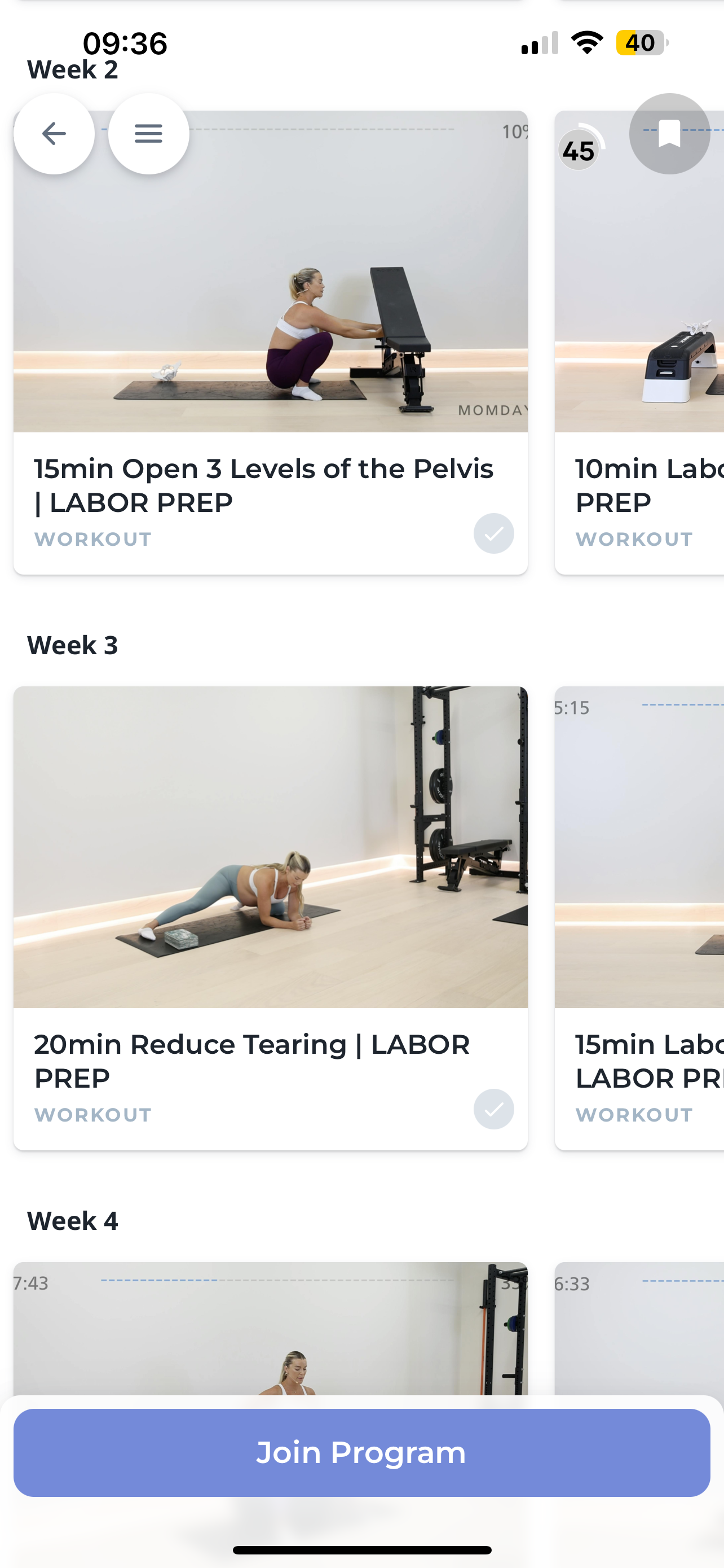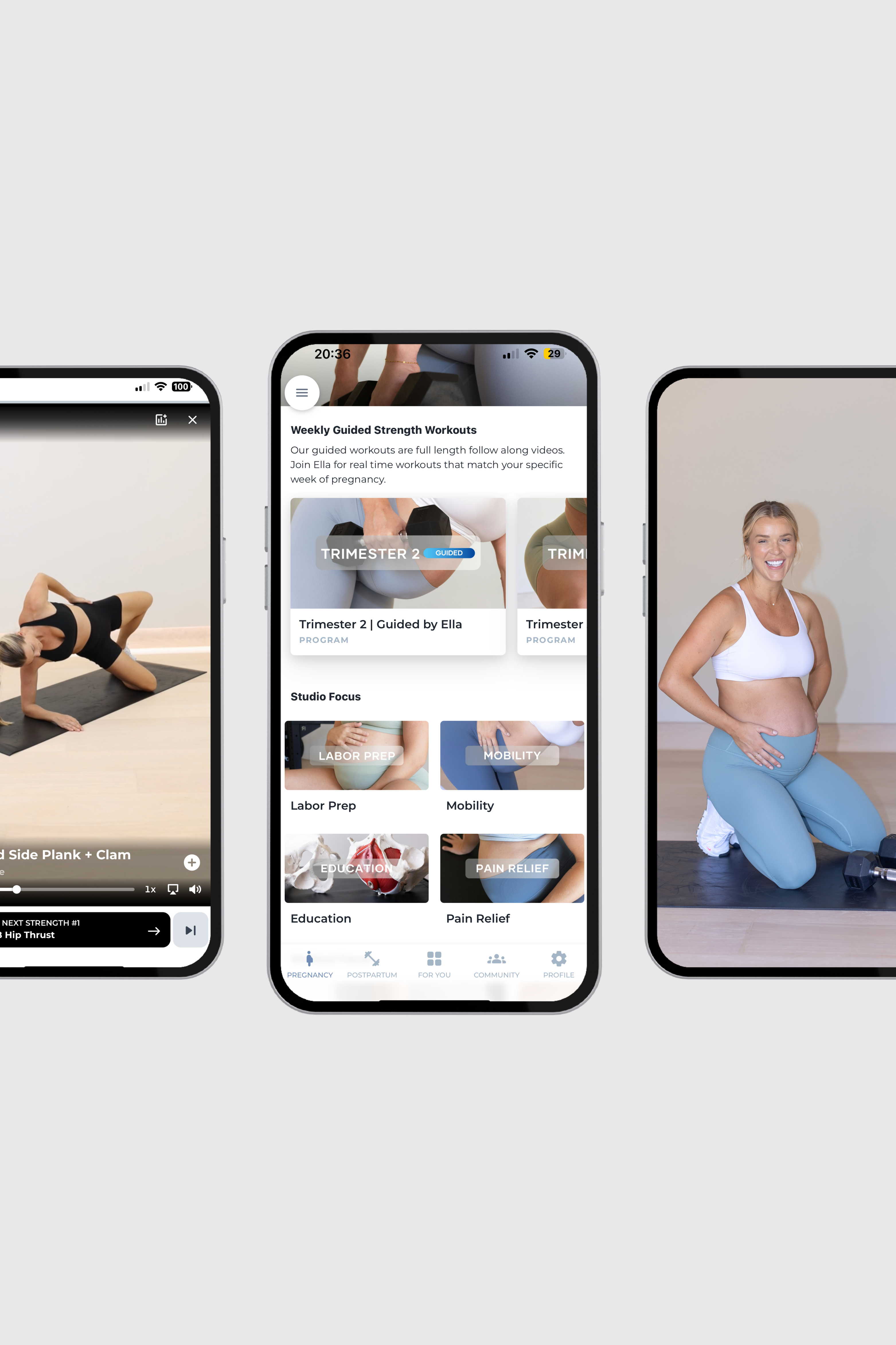 Follow along workouts designed for each phase, week, and day of your pregnancy.