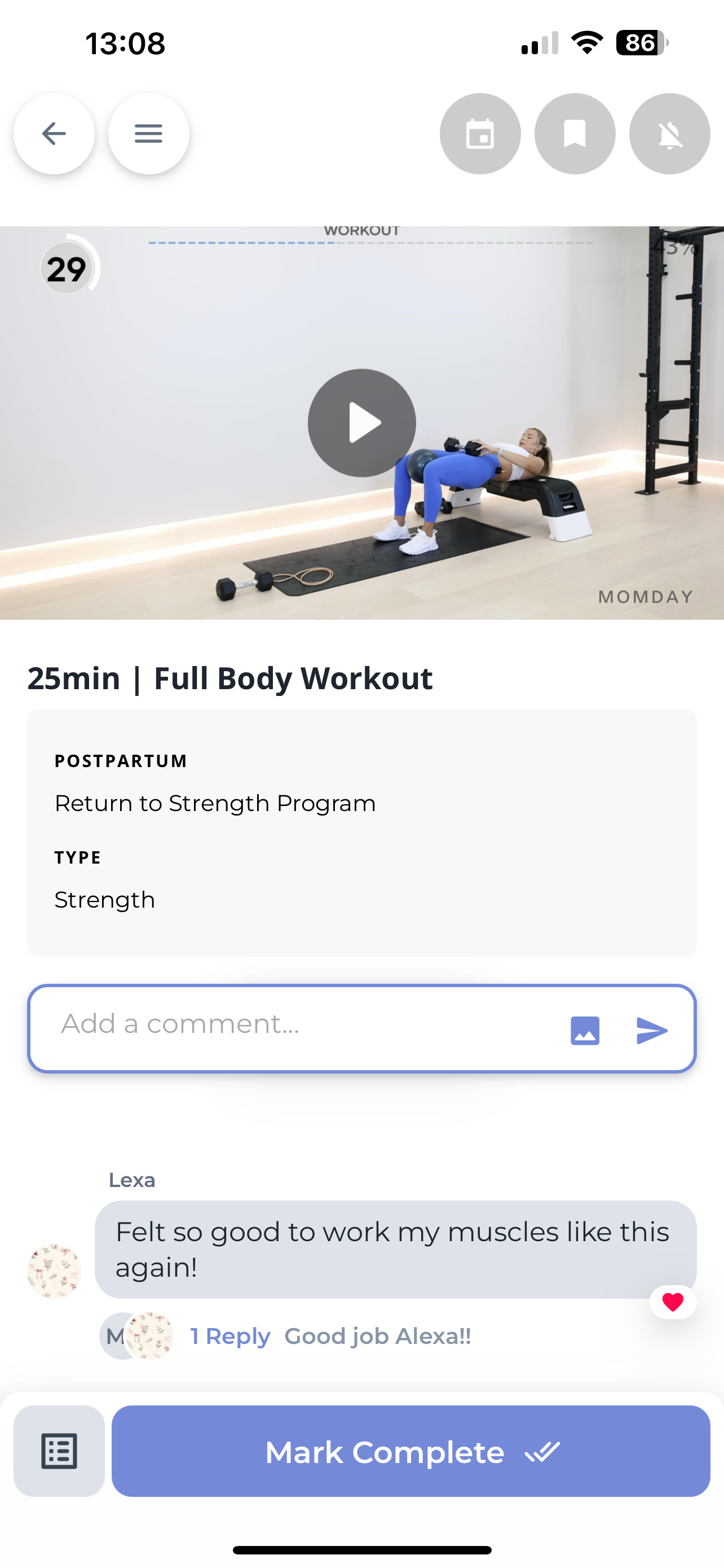 Workout anywhere with the Momday App on any device, or by logging into your account from any browser.